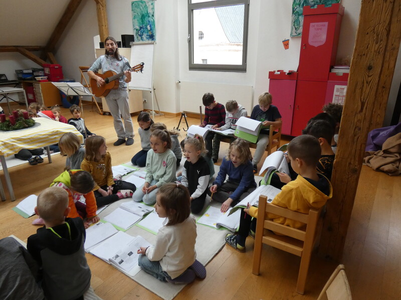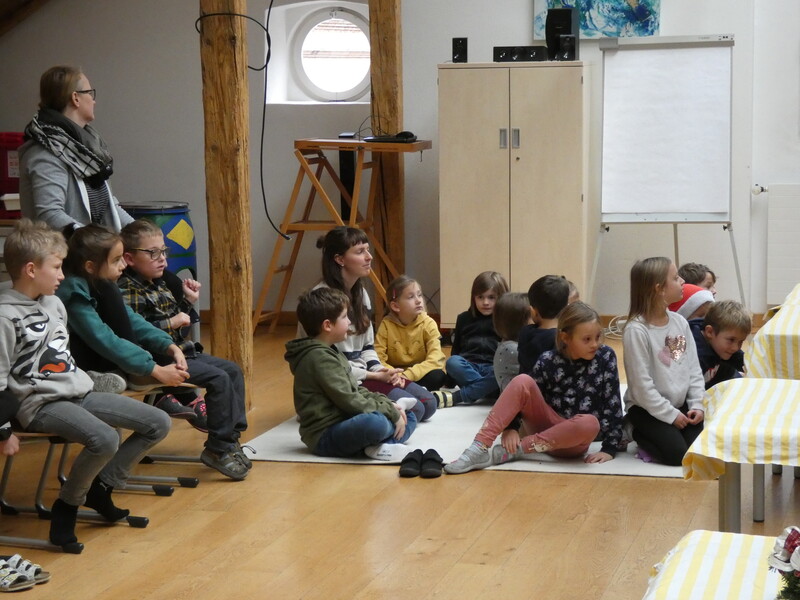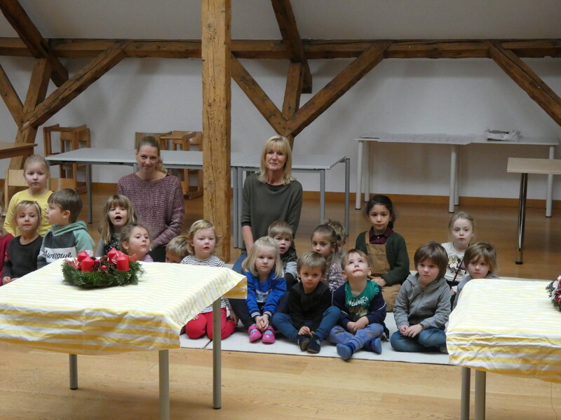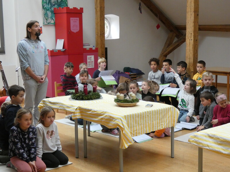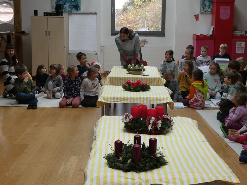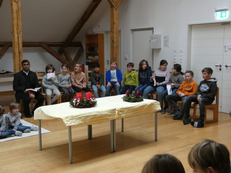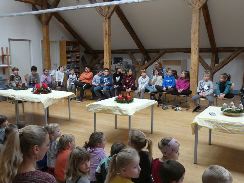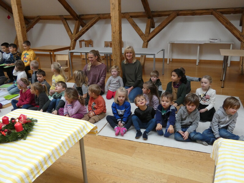 Am Montag darauf trafen sich alle Kinder des Kindergartens und der Volksschule im großen Dachbodenraum, um gemeinsam diesen 1. Advent zu feiern.