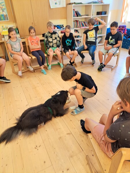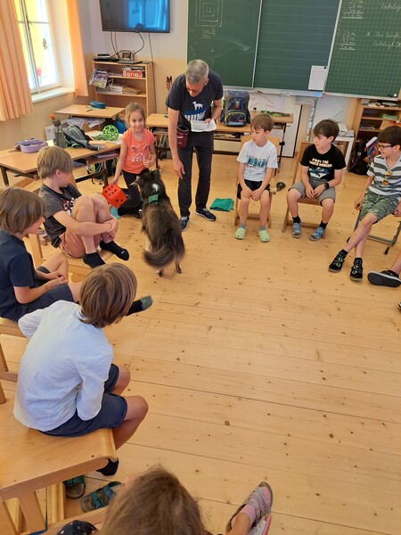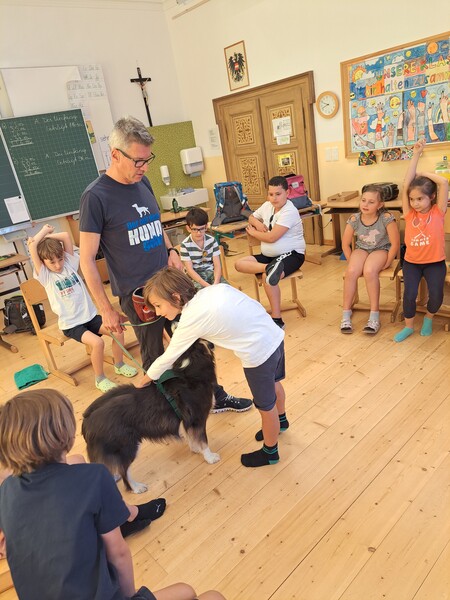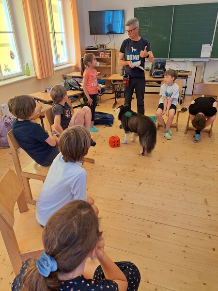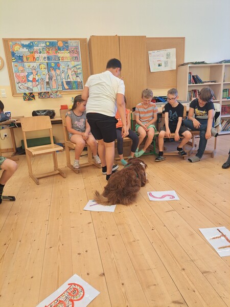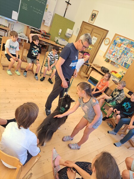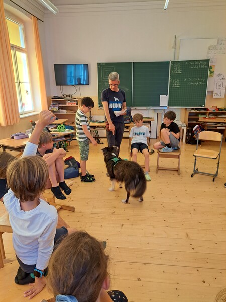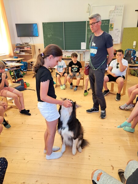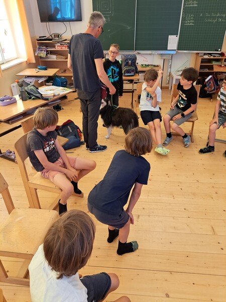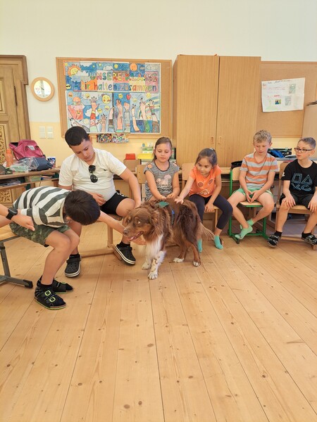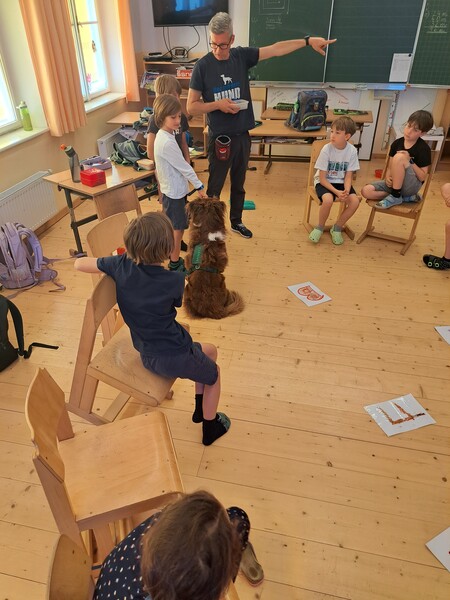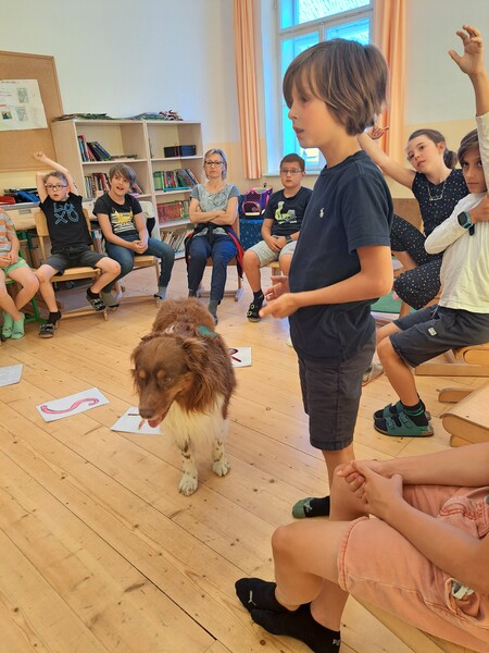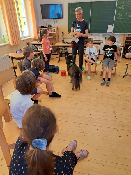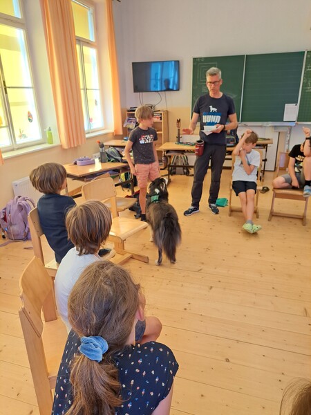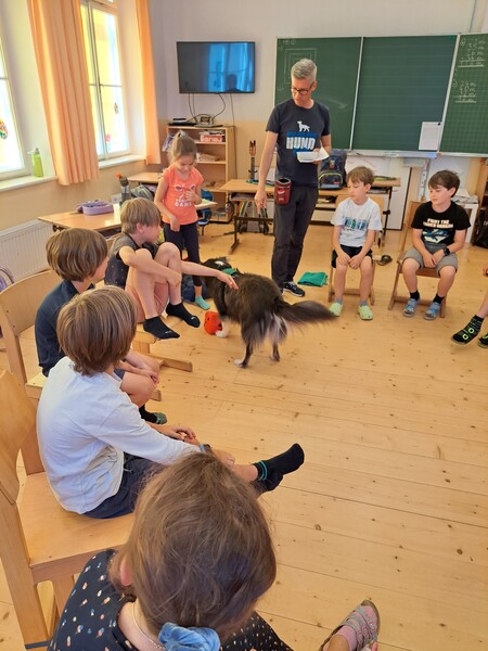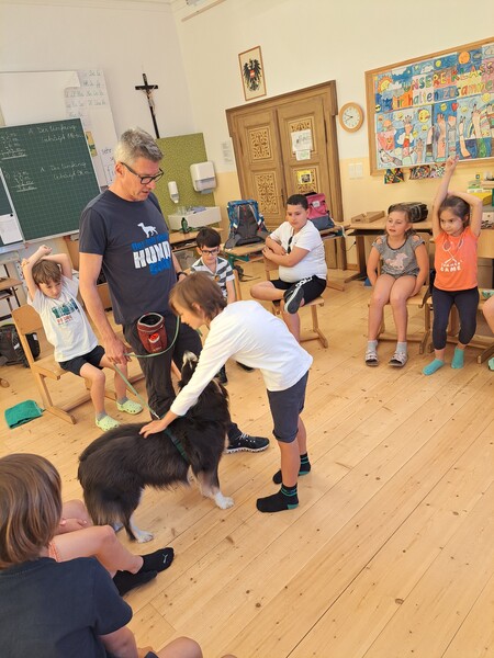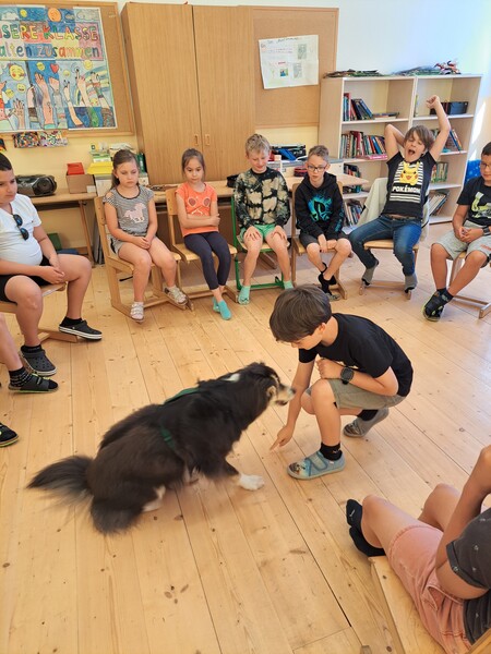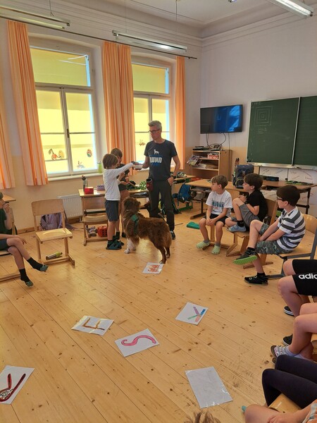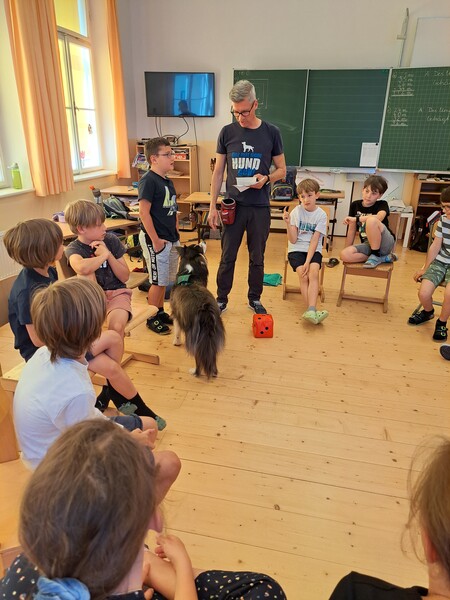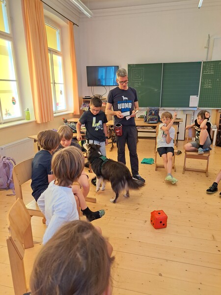 Die Kinder lernten in den zwei Unterrichtsstunden Allgemeines über den Hund, aber auch nützliche Informationen zum Umgang mit Hunden. Sie durften auch verschiedene Übungen mit den Tieren machen und hatten dabei sehr viel Spaß!