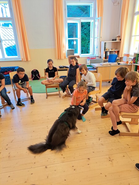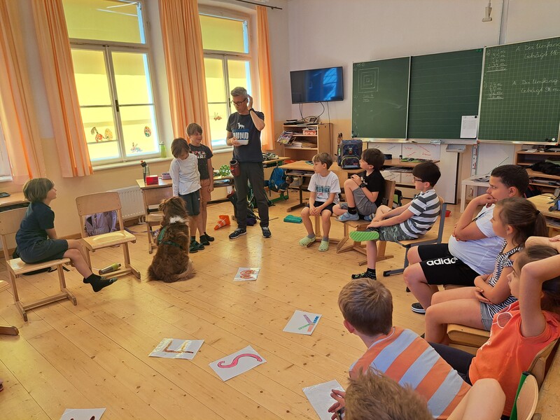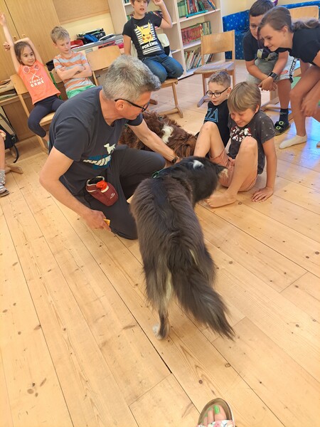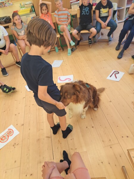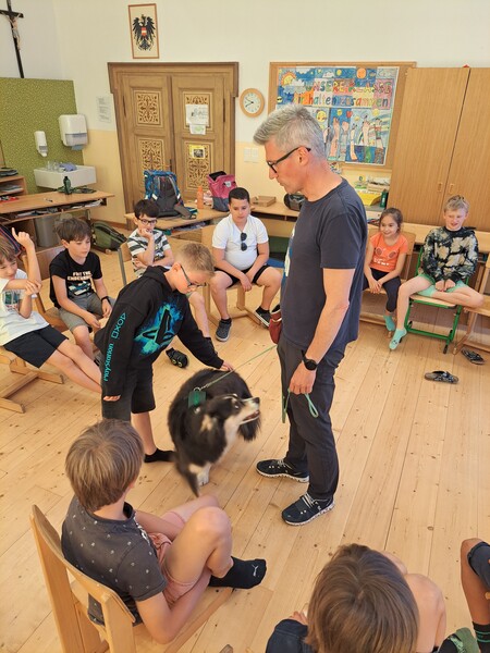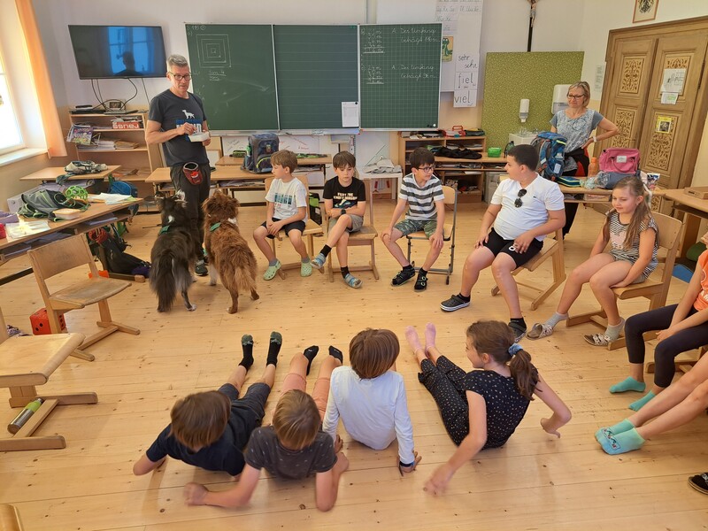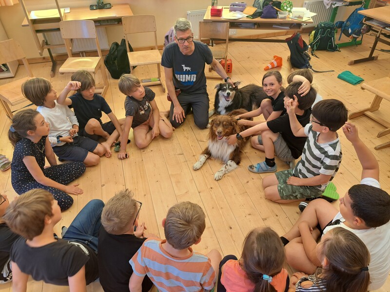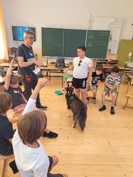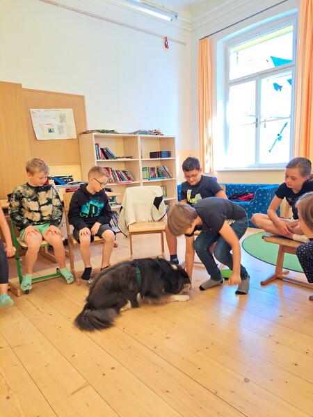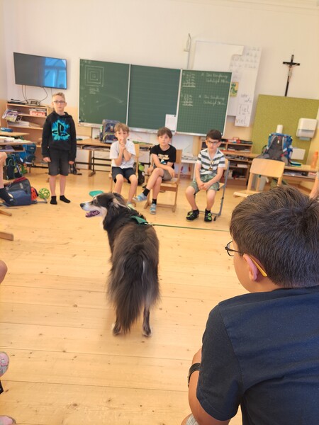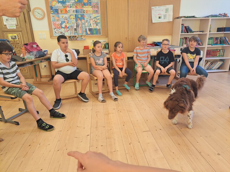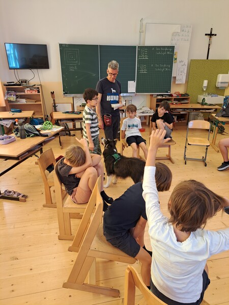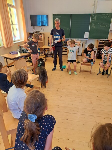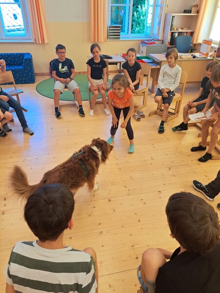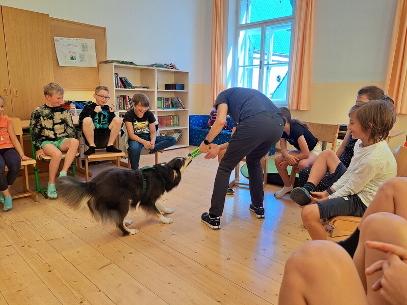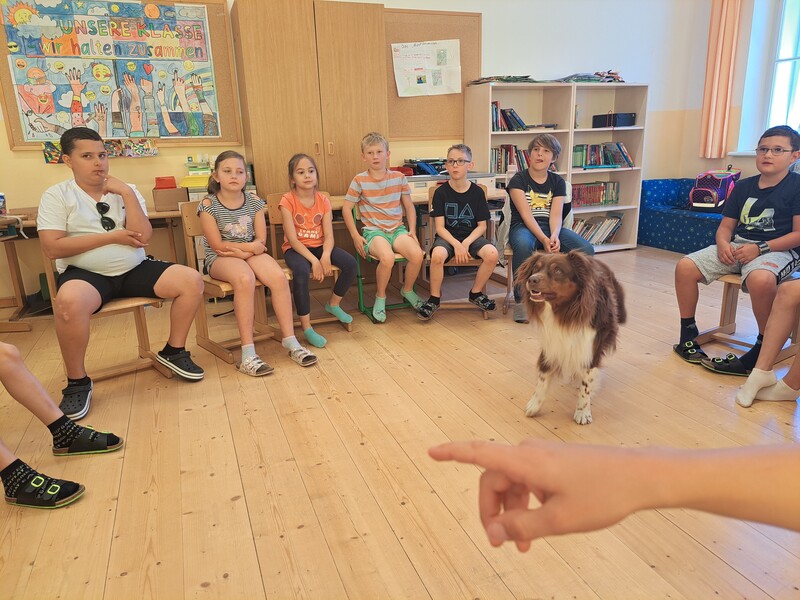 Die Kinder lernten in den zwei Unterrichtsstunden Allgemeines über den Hund, aber auch nützliche Informationen zum Umgang mit Hunden. Sie durften auch verschiedene Übungen mit den Tieren machen und hatten dabei sehr viel Spaß!
