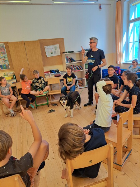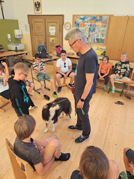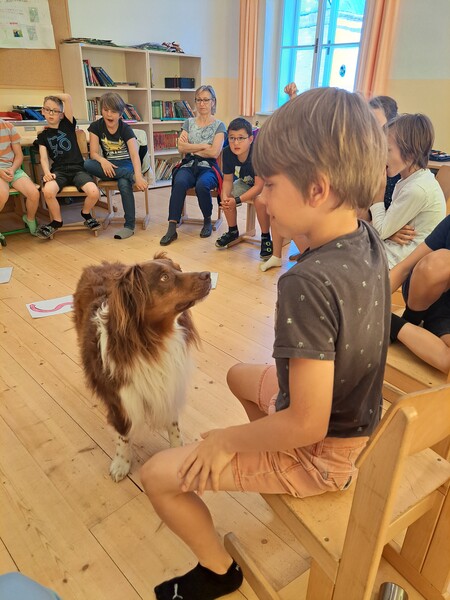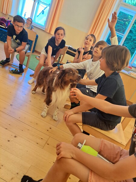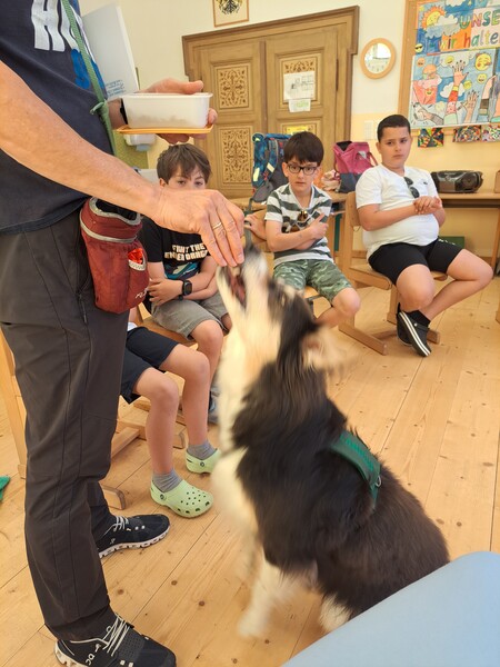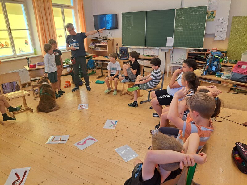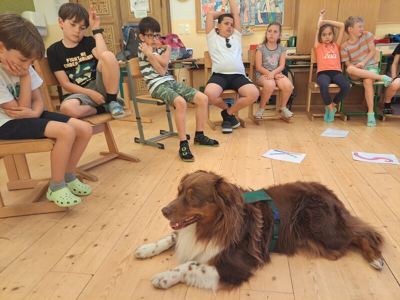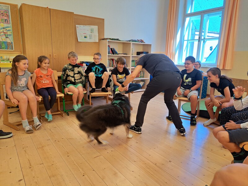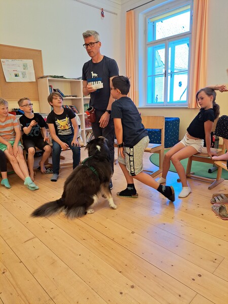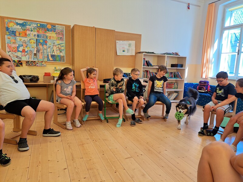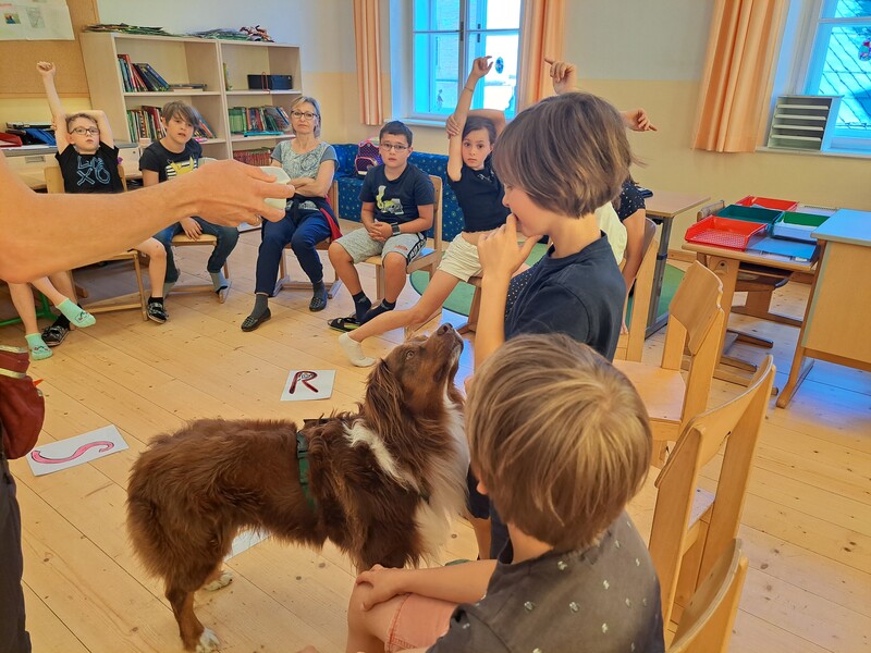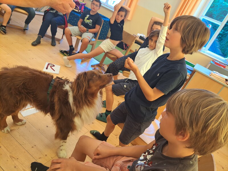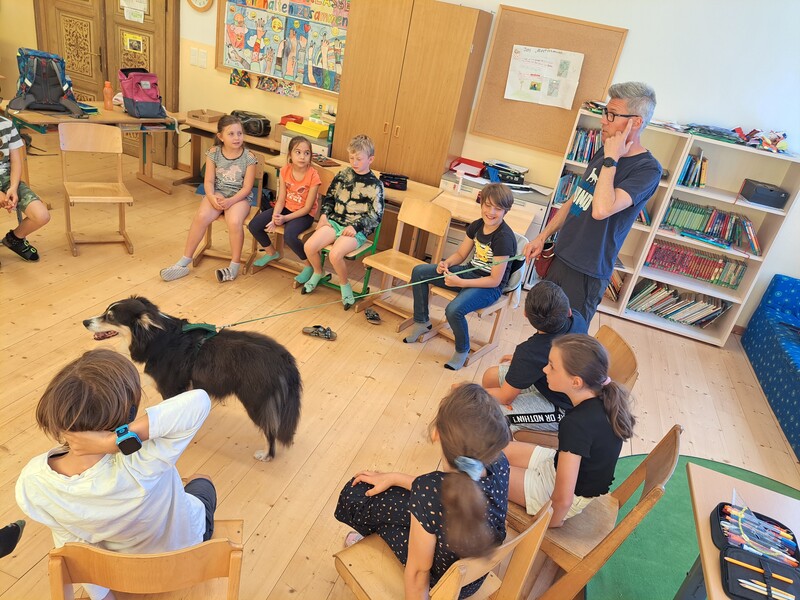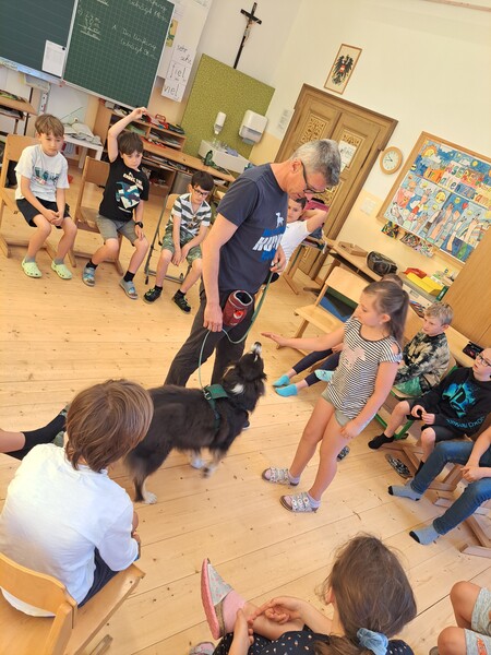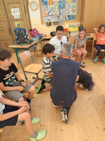 Die Kinder lernten in den zwei Unterrichtsstunden Allgemeines über den Hund, aber auch nützliche Informationen zum Umgang mit Hunden. Sie durften auch verschiedene Übungen mit den Tieren machen und hatten dabei sehr viel Spaß!