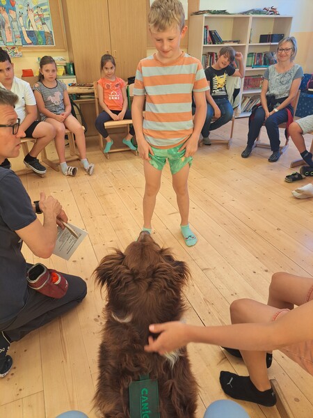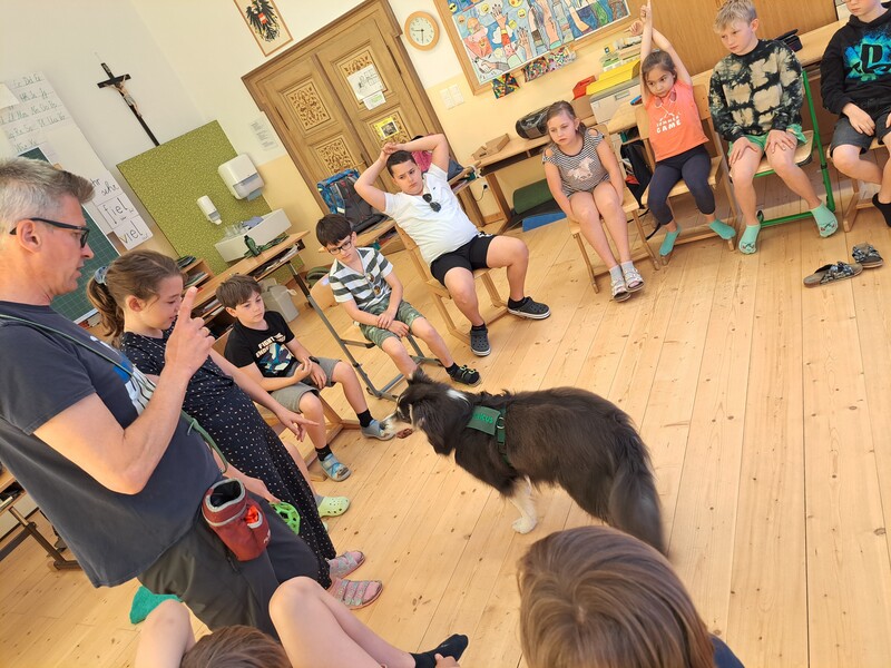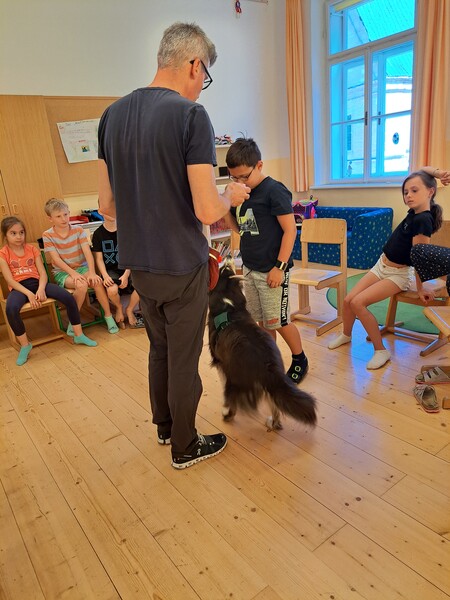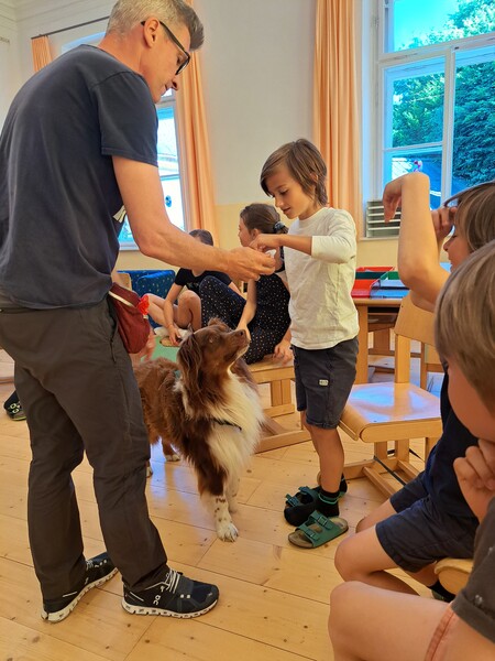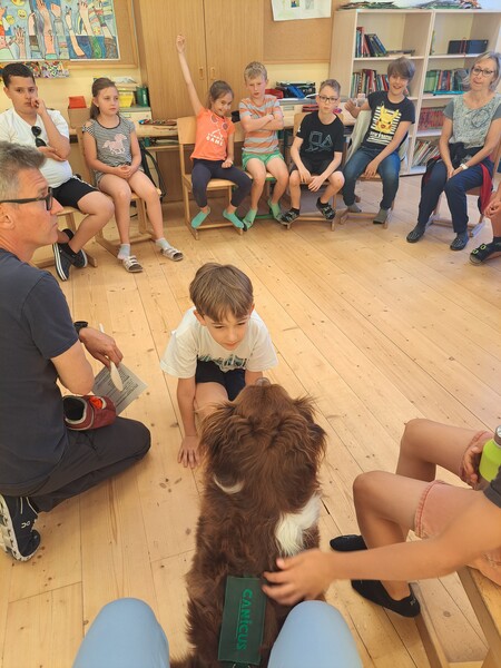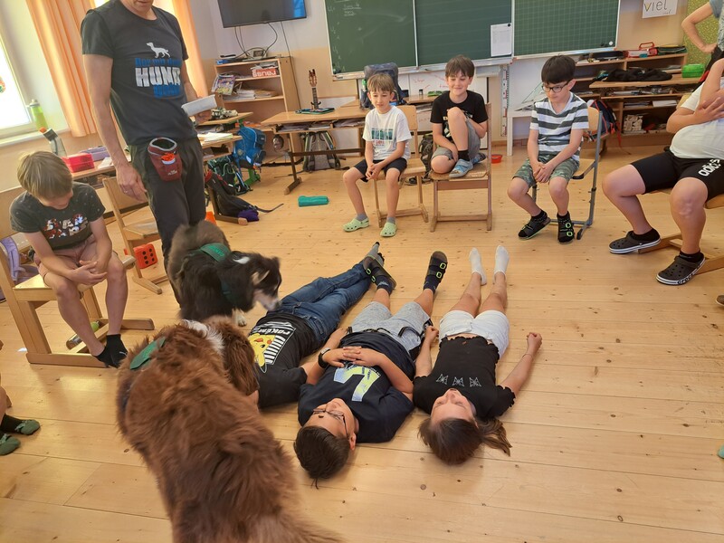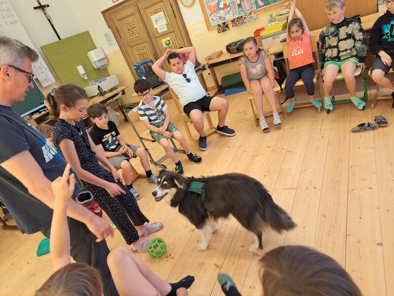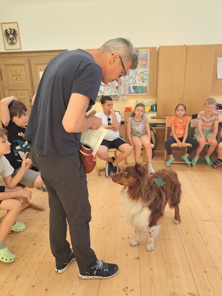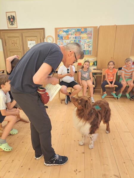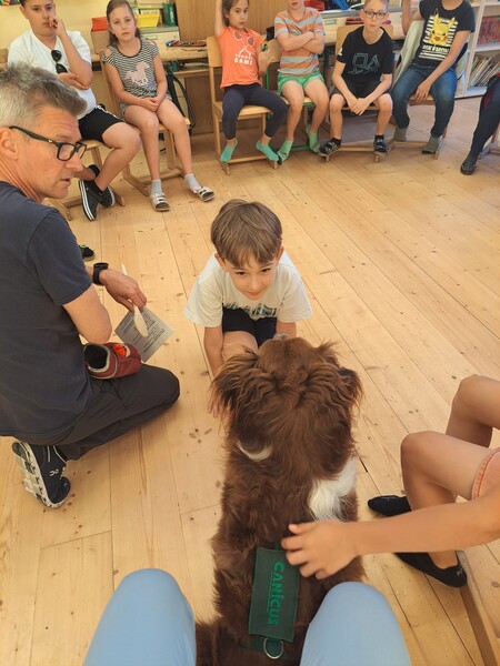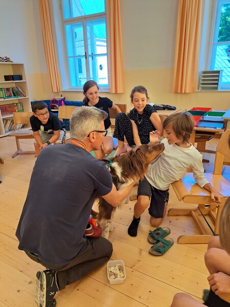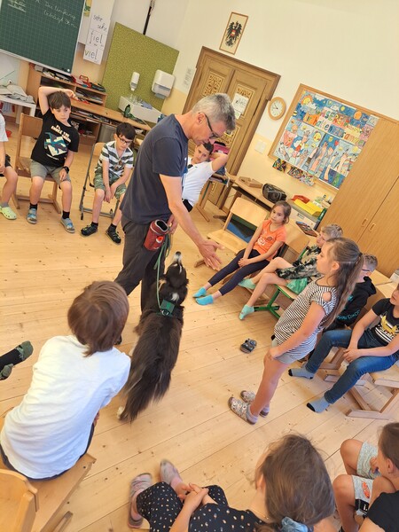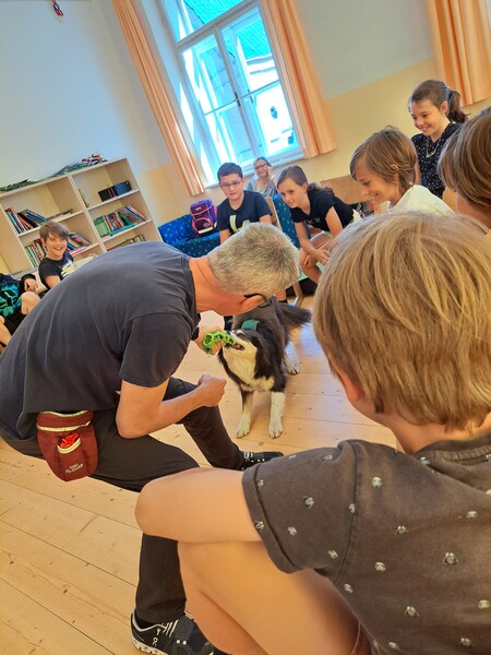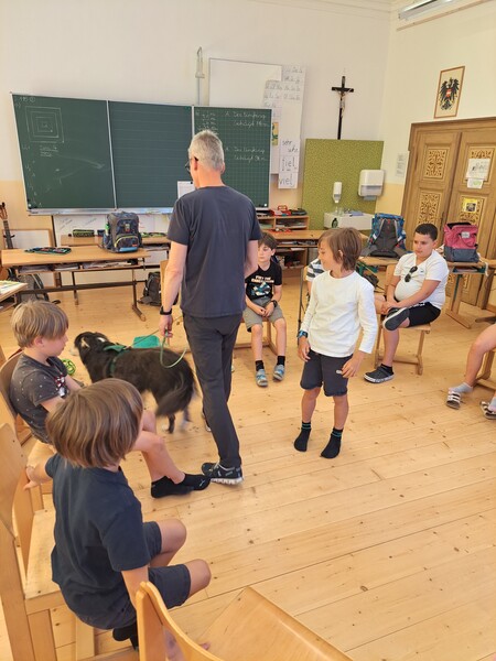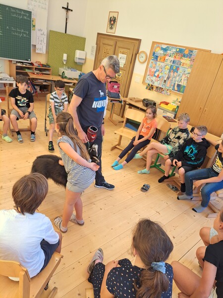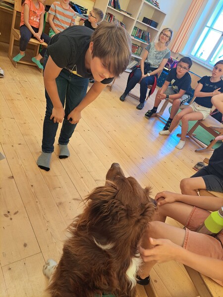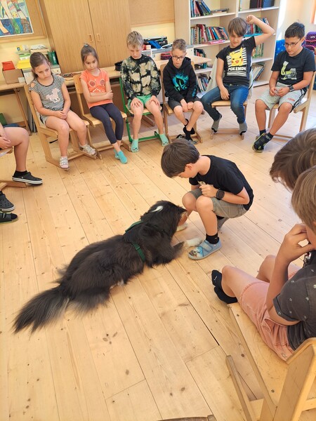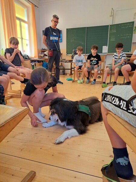 Die Kinder lernten in den zwei Unterrichtsstunden Allgemeines über den Hund, aber auch nützliche Informationen zum Umgang mit Hunden. Sie durften auch verschiedene Übungen mit den Tieren machen und hatten dabei sehr viel Spaß!