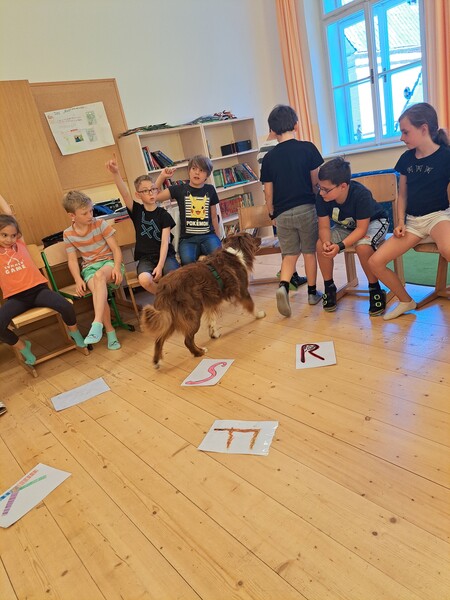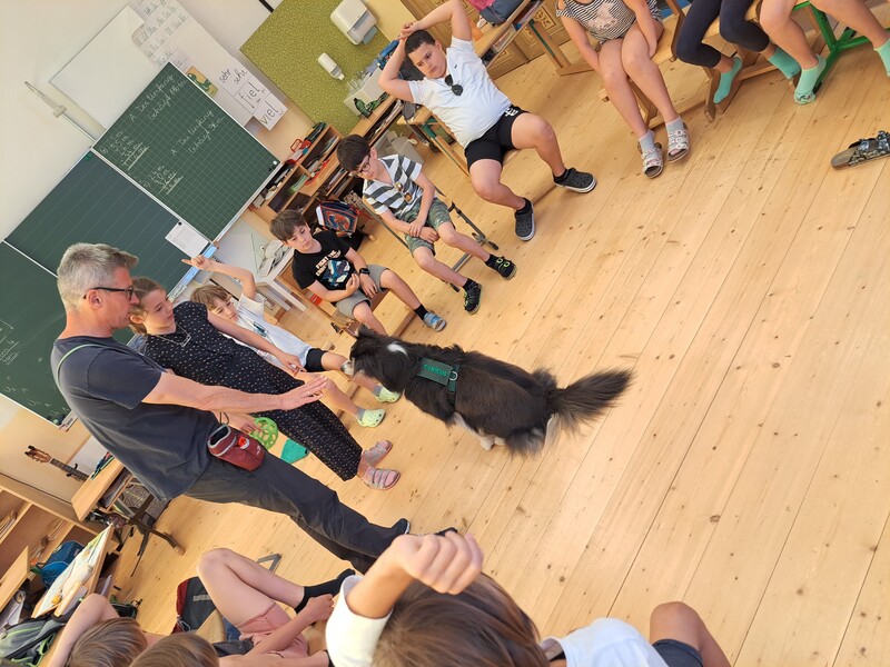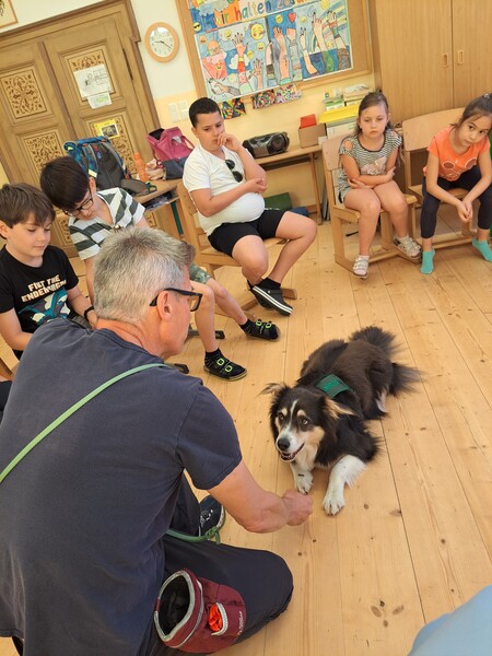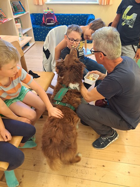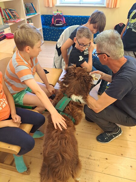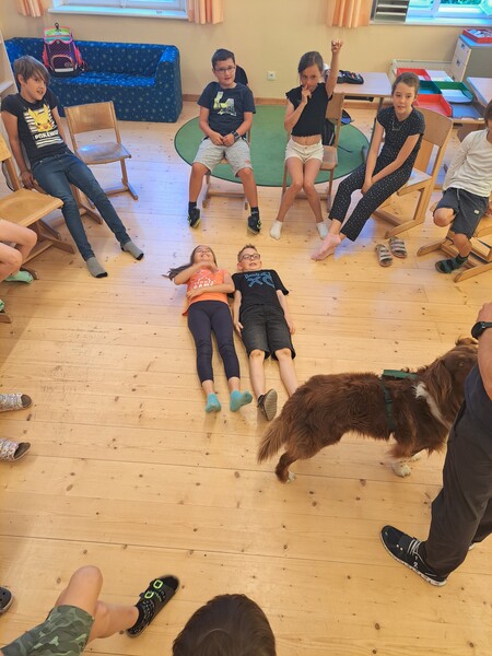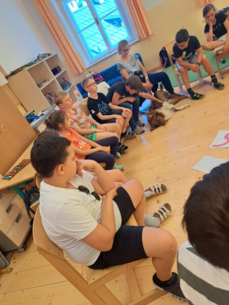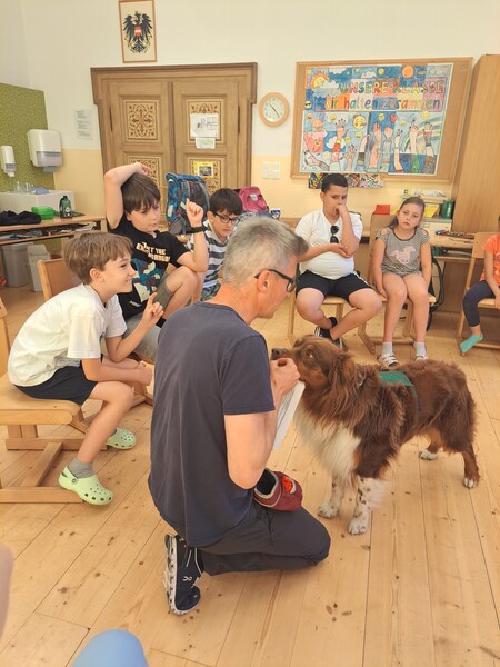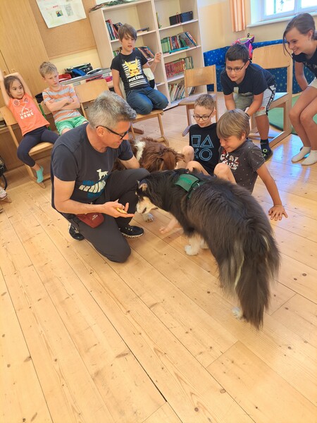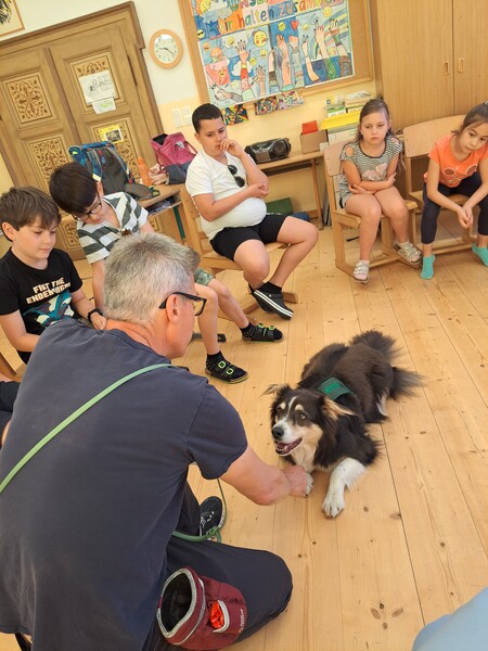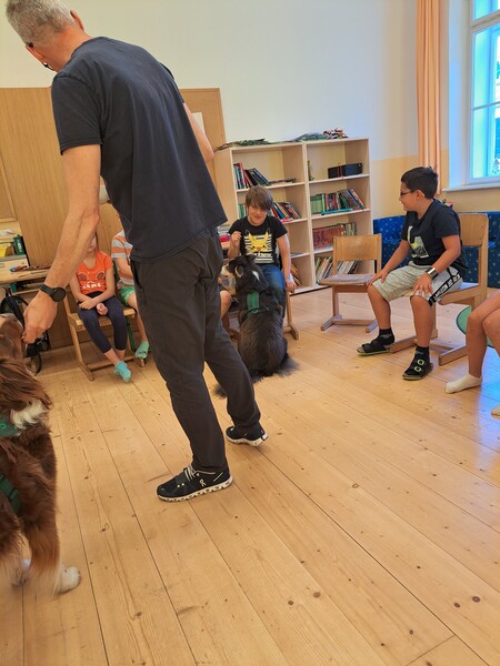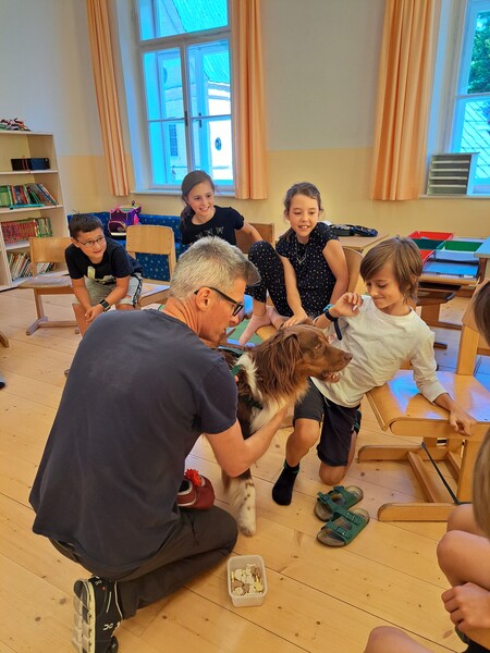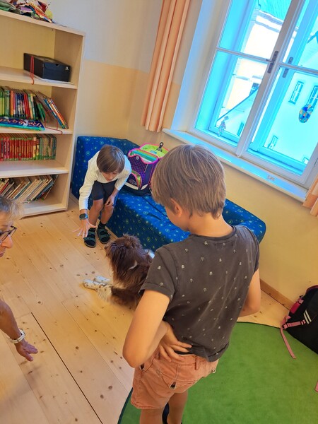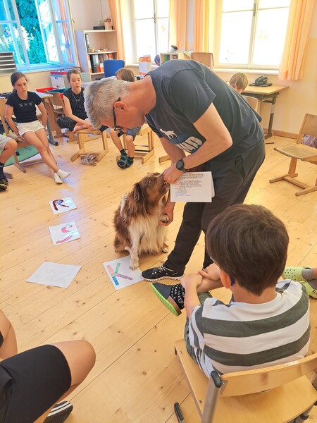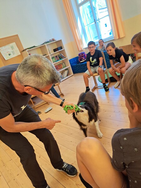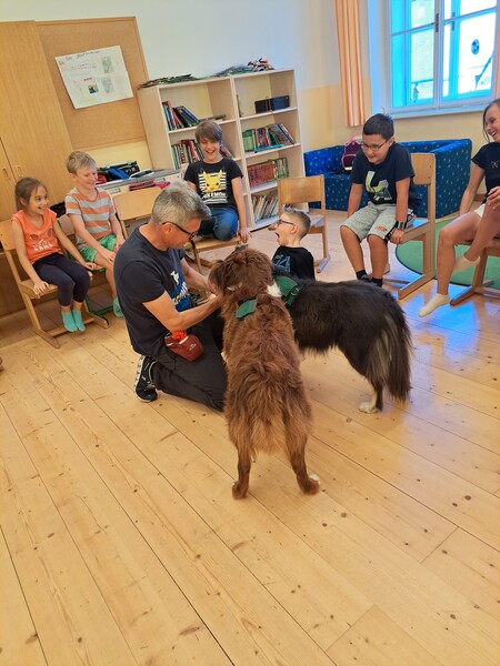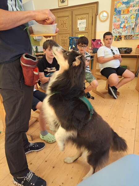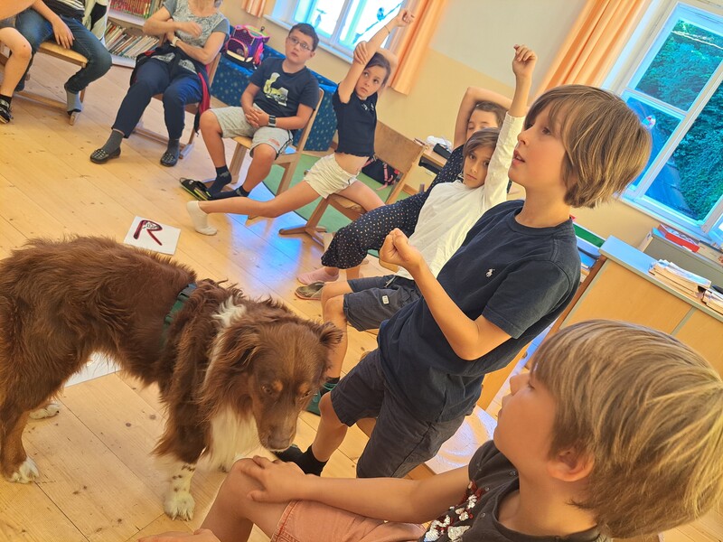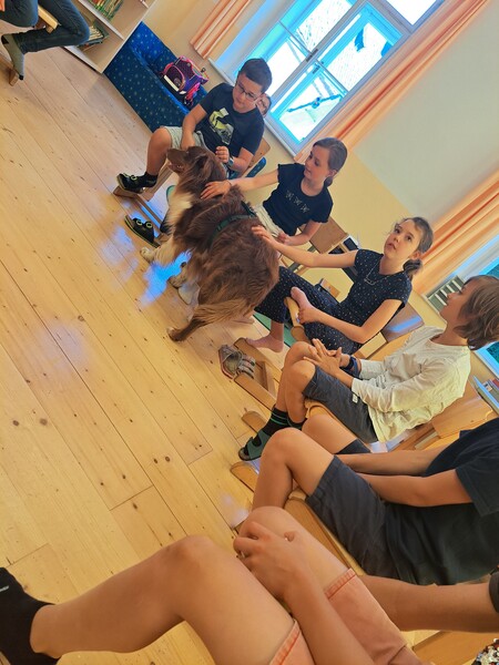 Die Kinder lernten in den zwei Unterrichtsstunden Allgemeines über den Hund, aber auch nützliche Informationen zum Umgang mit Hunden. Sie durften auch verschiedene Übungen mit den Tieren machen und hatten dabei sehr viel Spaß!