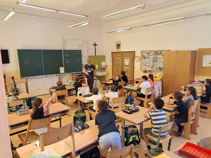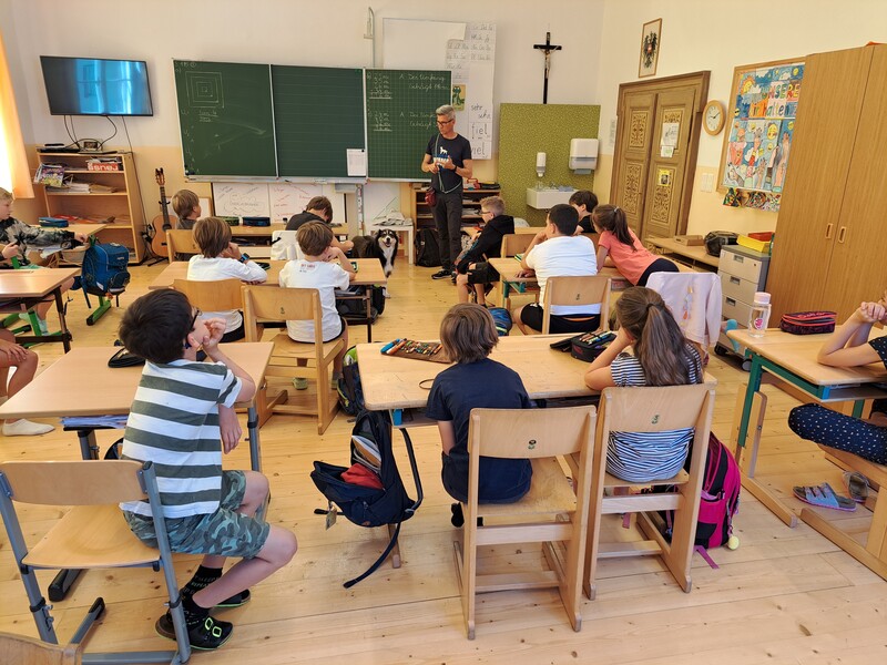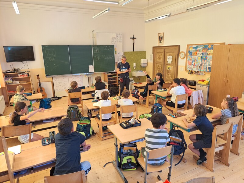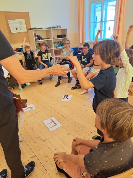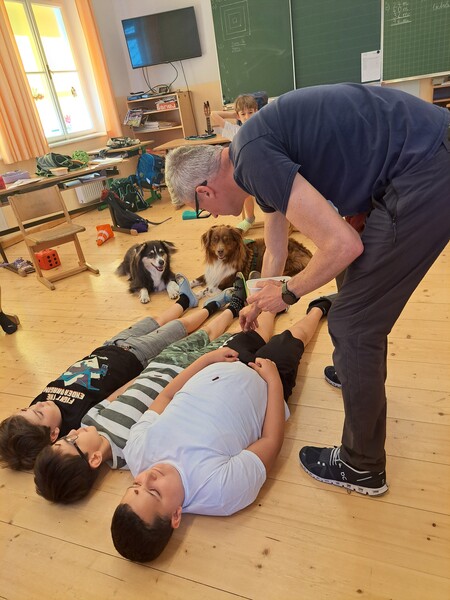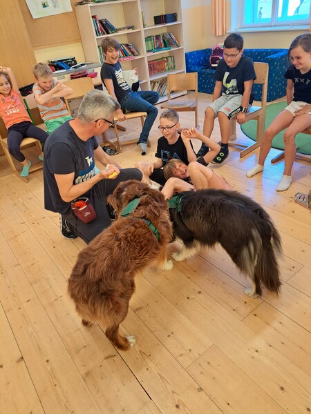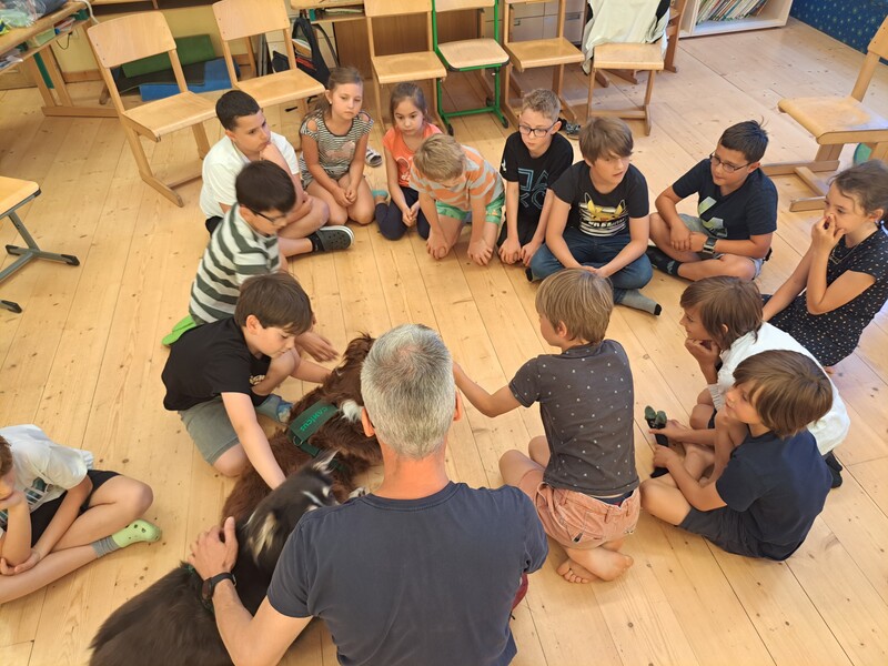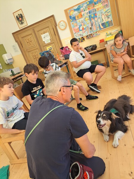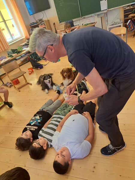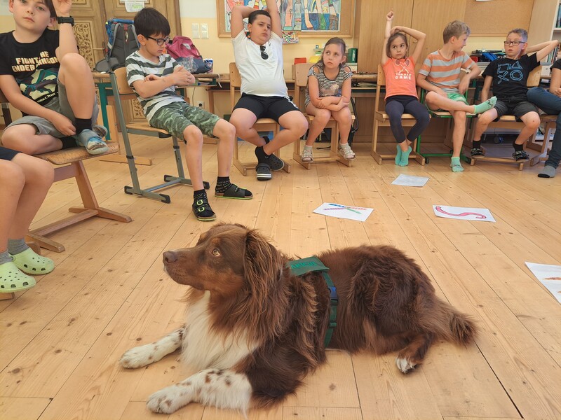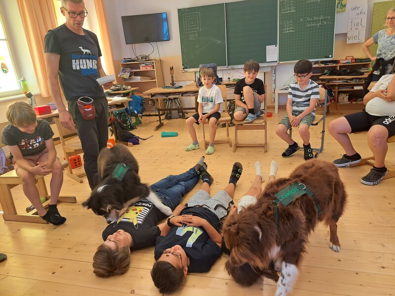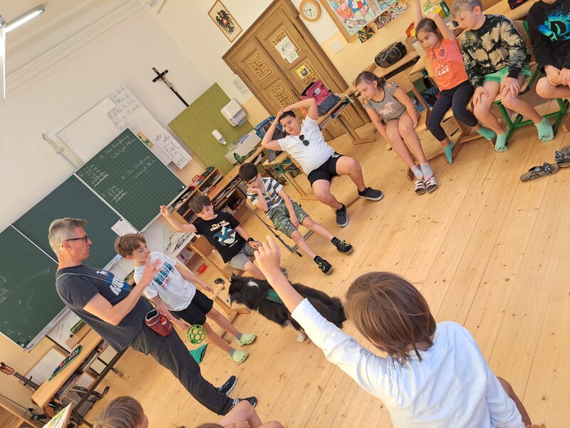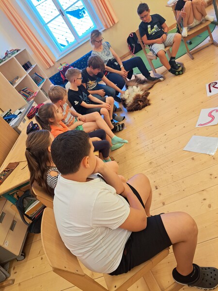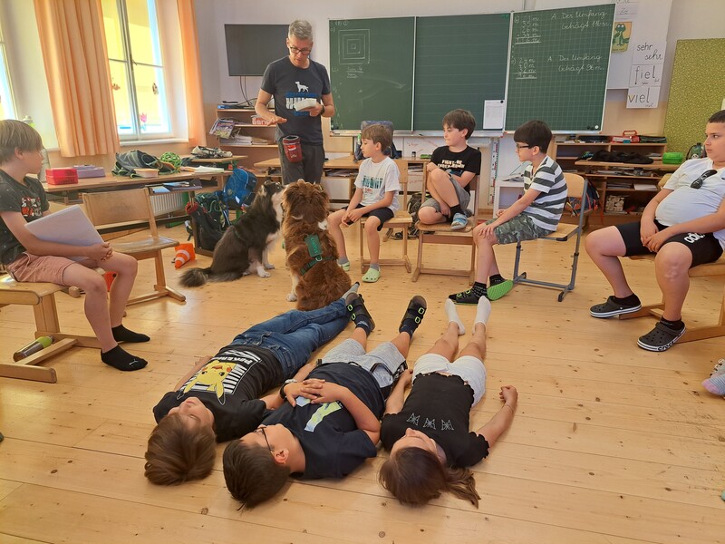 Die Kinder lernten in den zwei Unterrichtsstunden Allgemeines über den Hund, aber auch nützliche Informationen zum Umgang mit Hunden. Sie durften auch verschiedene Übungen mit den Tieren machen und hatten dabei sehr viel Spaß!