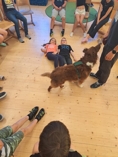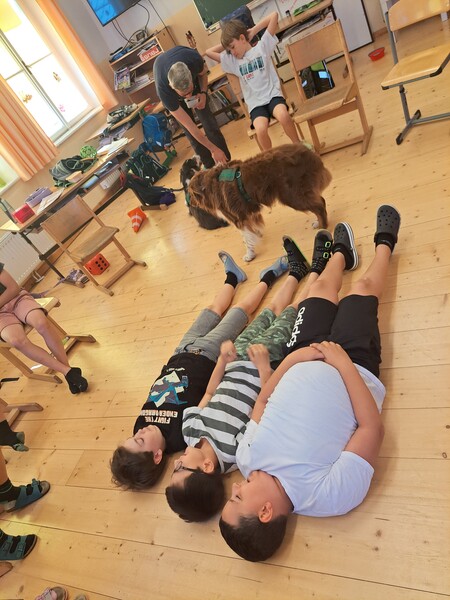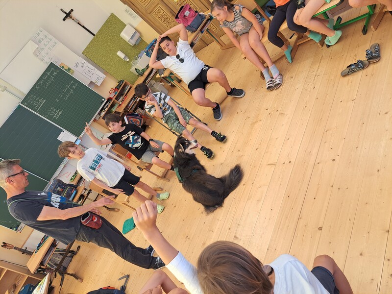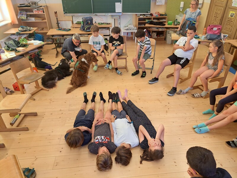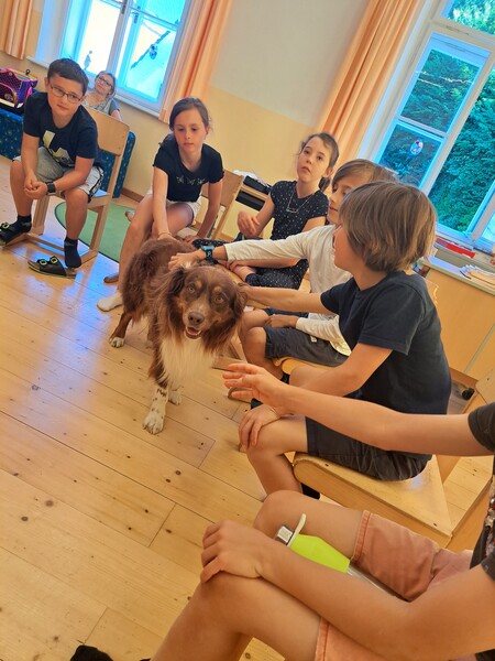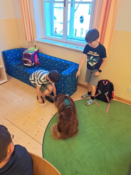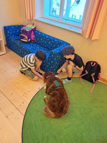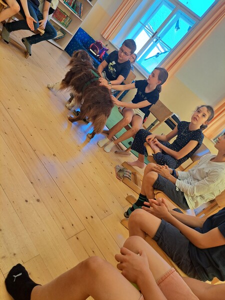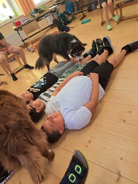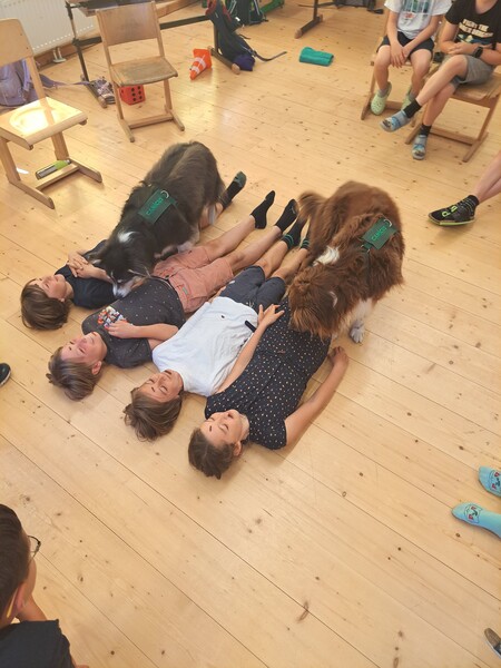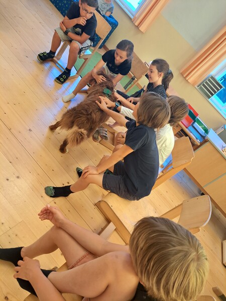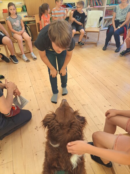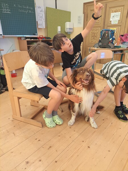 Bevor die Hunde uns verließen, fragten die Kinder schon, ob und wann wir sie wohl wieder sehen könnten. Wir hoffen auf ein Wiedersehen im nächsten Schuljahr!