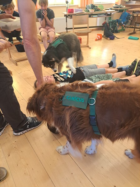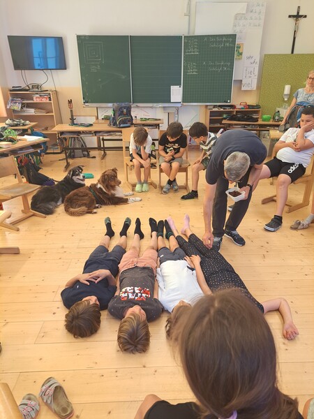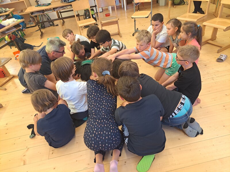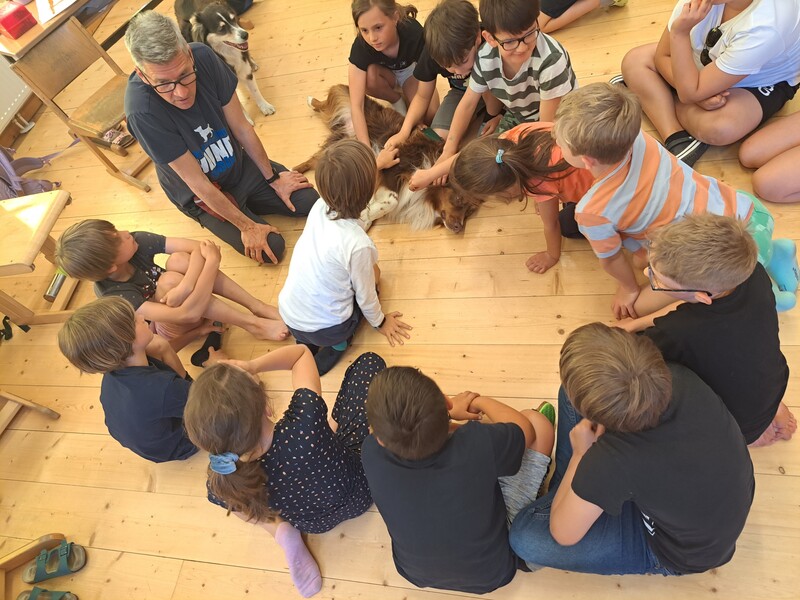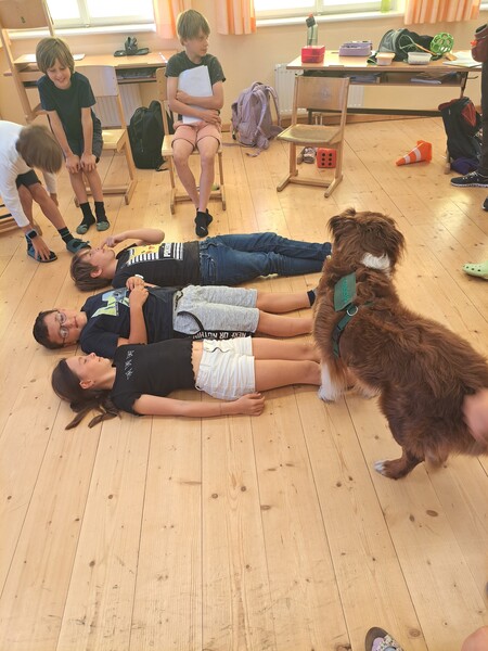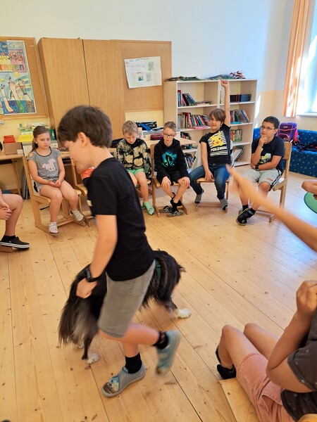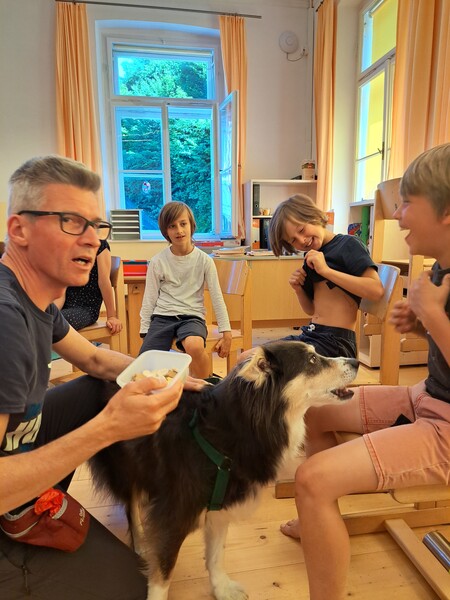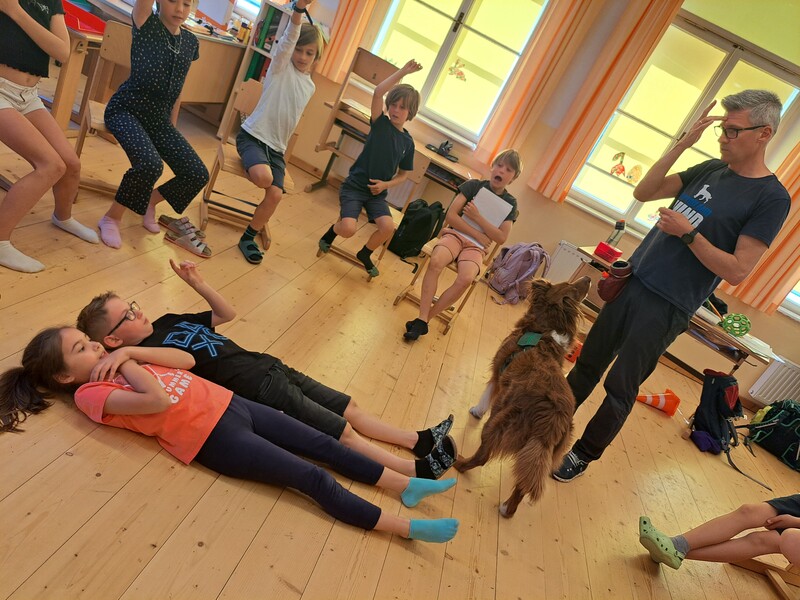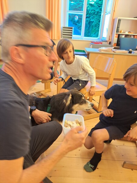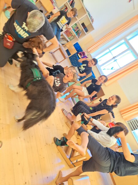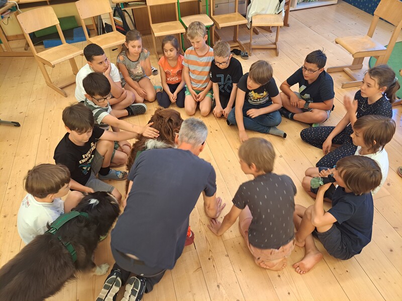 Bevor die Hunde uns verließen, fragten die Kinder schon, ob und wann wir sie wohl wieder sehen könnten. Wir hoffen auf ein Wiedersehen im nächsten Schuljahr!