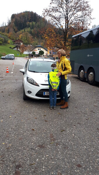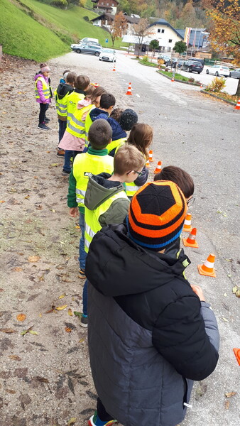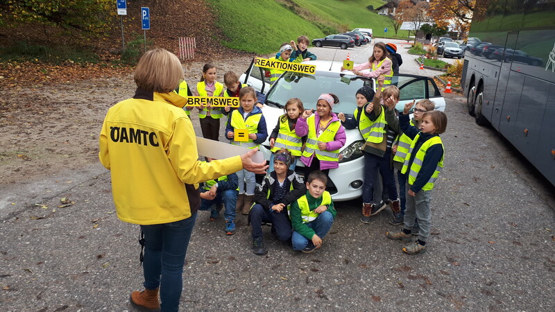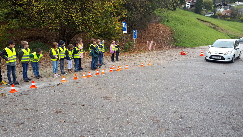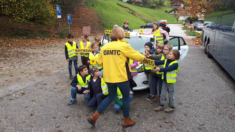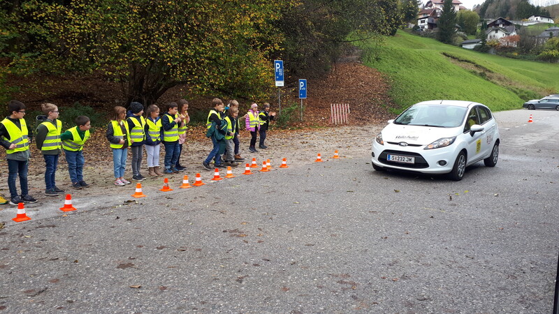 fand am 21. Oktober in der 3. Klasse statt. Dabei lernten die Kinder unter anderem durch Selbsterfahrung "Reaktionsweg + Bremsweg = Anhalteweg".