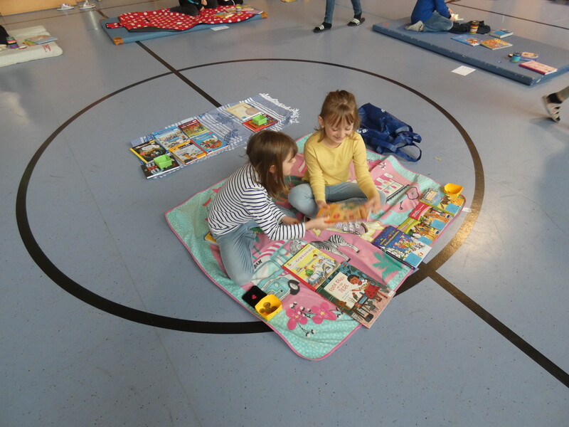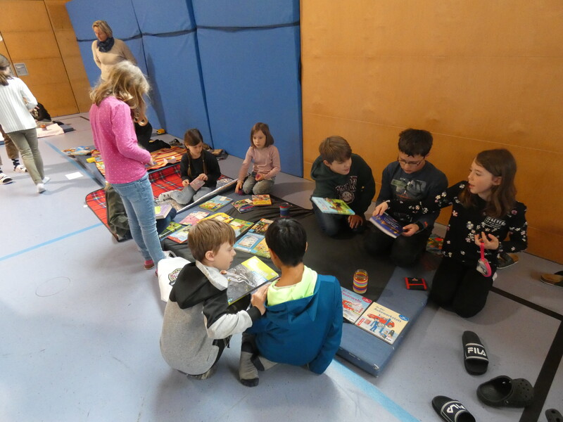 Mit dem verdienten bzw. mitgebrachten Geld konnte man auf den Picknickdecken und Turnmatten der anderen Kinder schmökern gehen und neue Bücher erstehen. Es entstand ein reges Treiben von Käufern und Verkäufern, selbsternannten Marktschreiern und ganz findigen Kindern, die nach dem Berg-Prophet-Prinzip mit einem Buch durch den ganzen Turnsaal marschierten und ihre Ware feil boten.