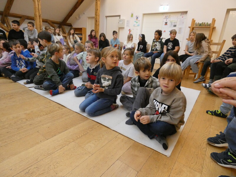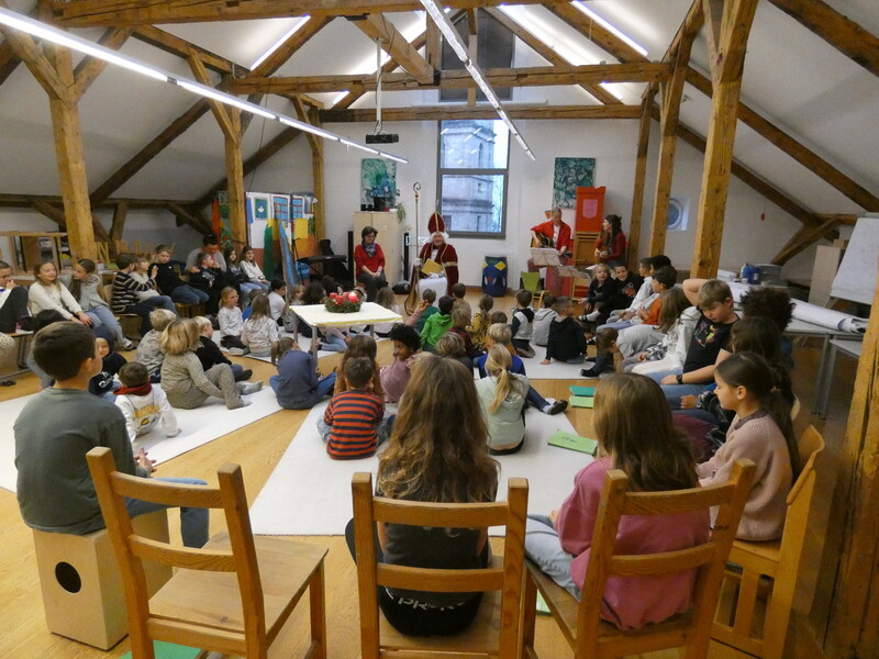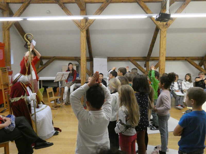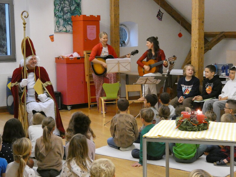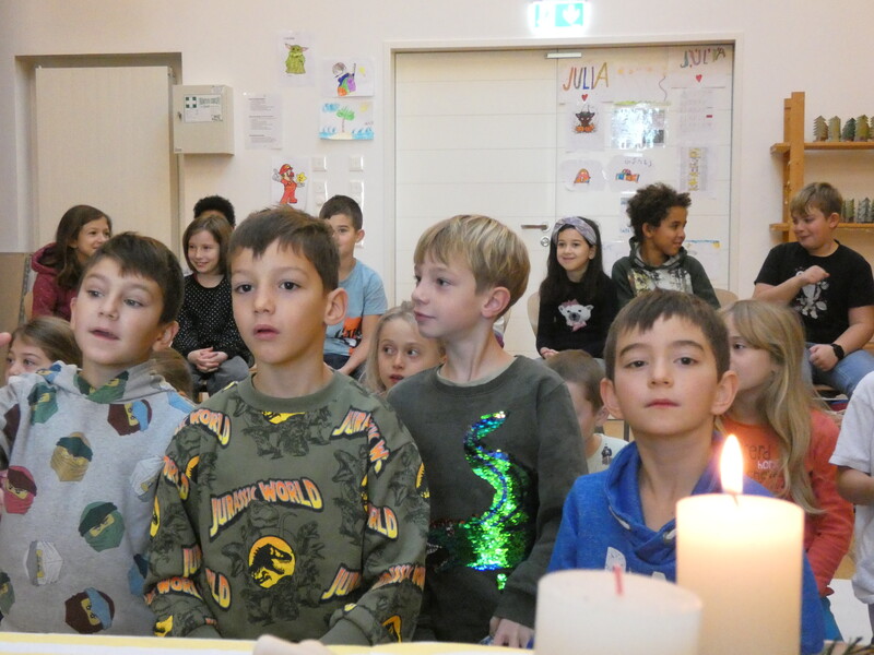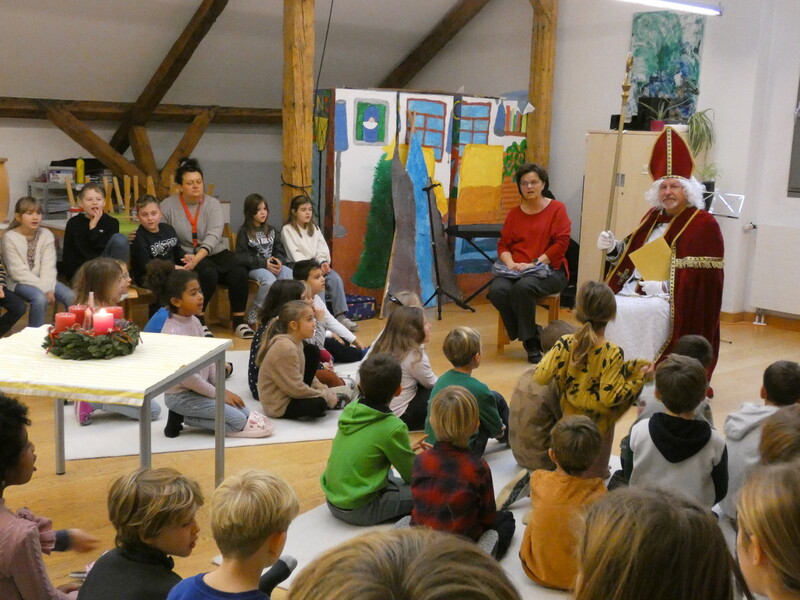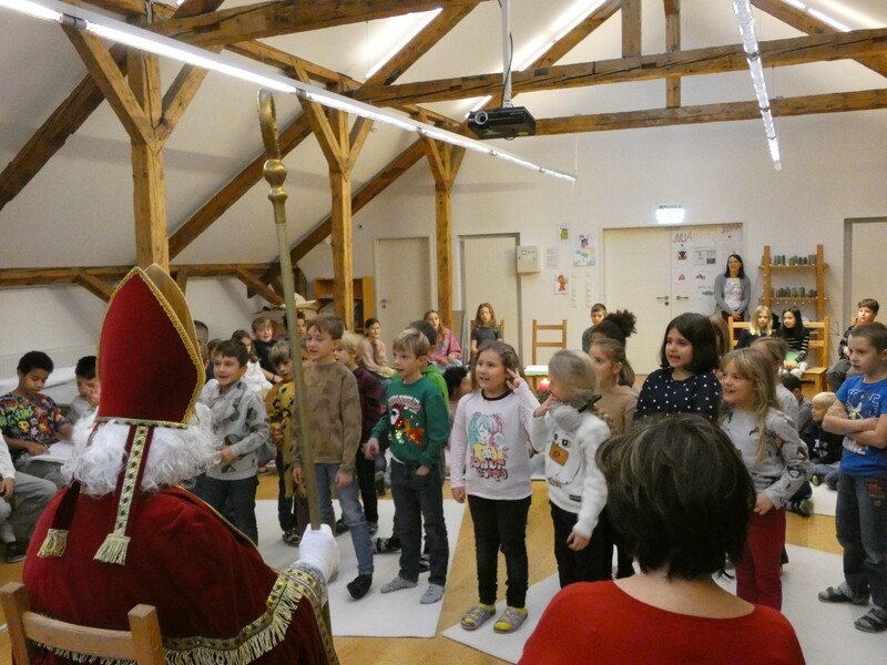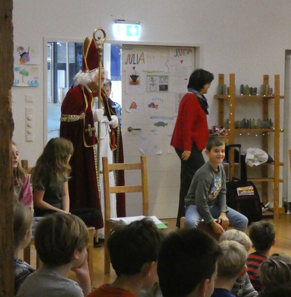 Am 6. Dezember kam der Nikolaus zu uns. Besonders begeistert war er vom langen Gedicht, dass die erste Klasse einstudiert hatte. Er erzählte uns auch von seinem Leben und warum er ein heiliger Mann ist.
