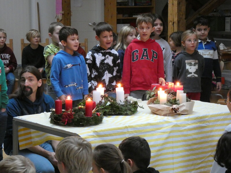 Der 2. Dezember war der Montag nach dem 1. Adventsonntag. Jede Klasse brachte einen Adventkranz mit in den Dachboden, einer schöner als der andere.