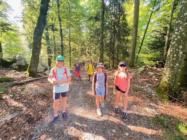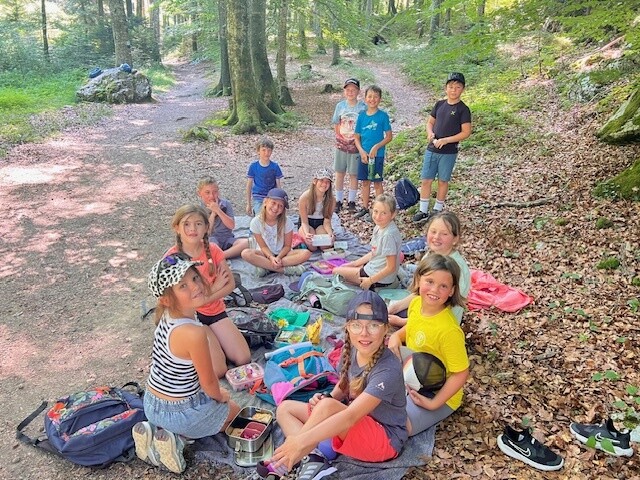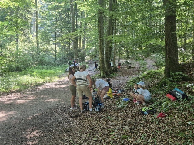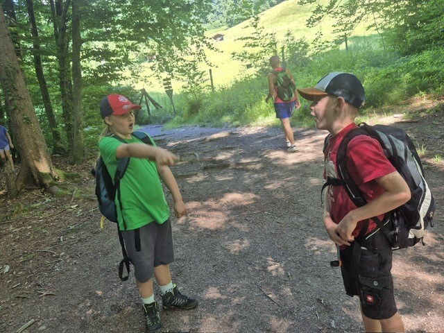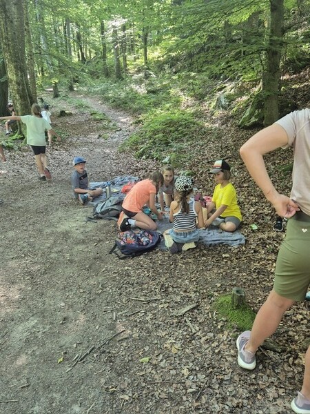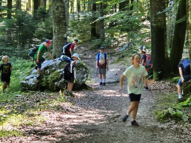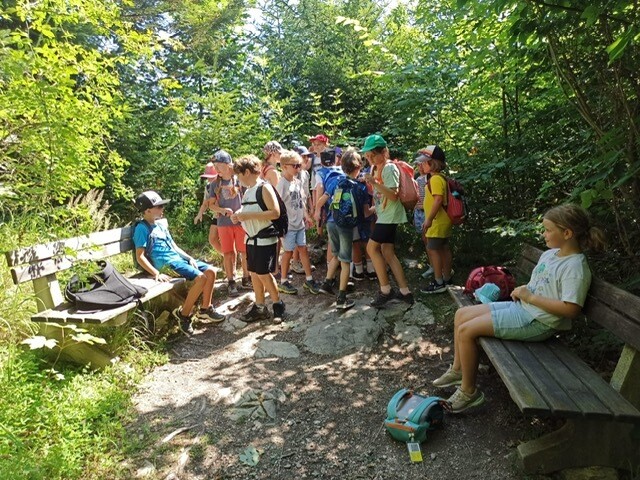 Bei den warmen Temperaturen waren wir froh über die schattigen Wege und Plätze der Wanderung. Alle freuten sich besonders über den Zwischenstopp im Wald unter dem Kleinen Barmstein, bei dem wir uns gemütlich mit einer leckeren Jause für die letzten Meter stärkten. Bei der Ruine Thürndl hatten die Kinder noch genügend Zeit, um die Gegend zu erkunden und miteinander zu spielen. Danach wanderten wir noch über den Waldweg zur Haltestelle Fuchsturm. Zuletzt fuhren wir mit dem Bus wieder zurück auf den Dürrnberg.